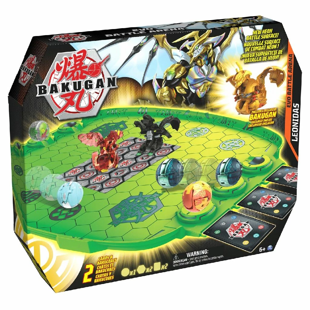 Breng je spel naar een hoger niveau met de Bakugan Battle Arena. Deze arena is de ultieme manier om met je vrienden te vechten. Met een zeshoekig rooster al op het bord, is het leggen van je BakuCores, inbegrepen, nog nooit zo snel geweest. Neem het op tegen een tegenstander en rol je nieuwe exclusieve Bakugan, inbegrepen, voor pop-open Baku-Action. De meegeleverde bumpers van de Battle Arena zorgen ervoor dat je ballen altijd in het spel blijven. De spanning van de Battle Planet-vechtpartij komt tot leven met de Battle Arena. Wie verlaat de Bakugan Battle Arena als zegevierend? Bakugan strijd! Inhoud: 1 Evo Battle Arena, 1 Bakugan, 2 BakuCores, 1 personagekaart, 1 poortkaart, 1 Bakugan-speelgoedboek met vechtregels en een instructieblad. Wordt geleverd in full-colour doos. Geschikt voor kinderen vanaf 6 jaar.