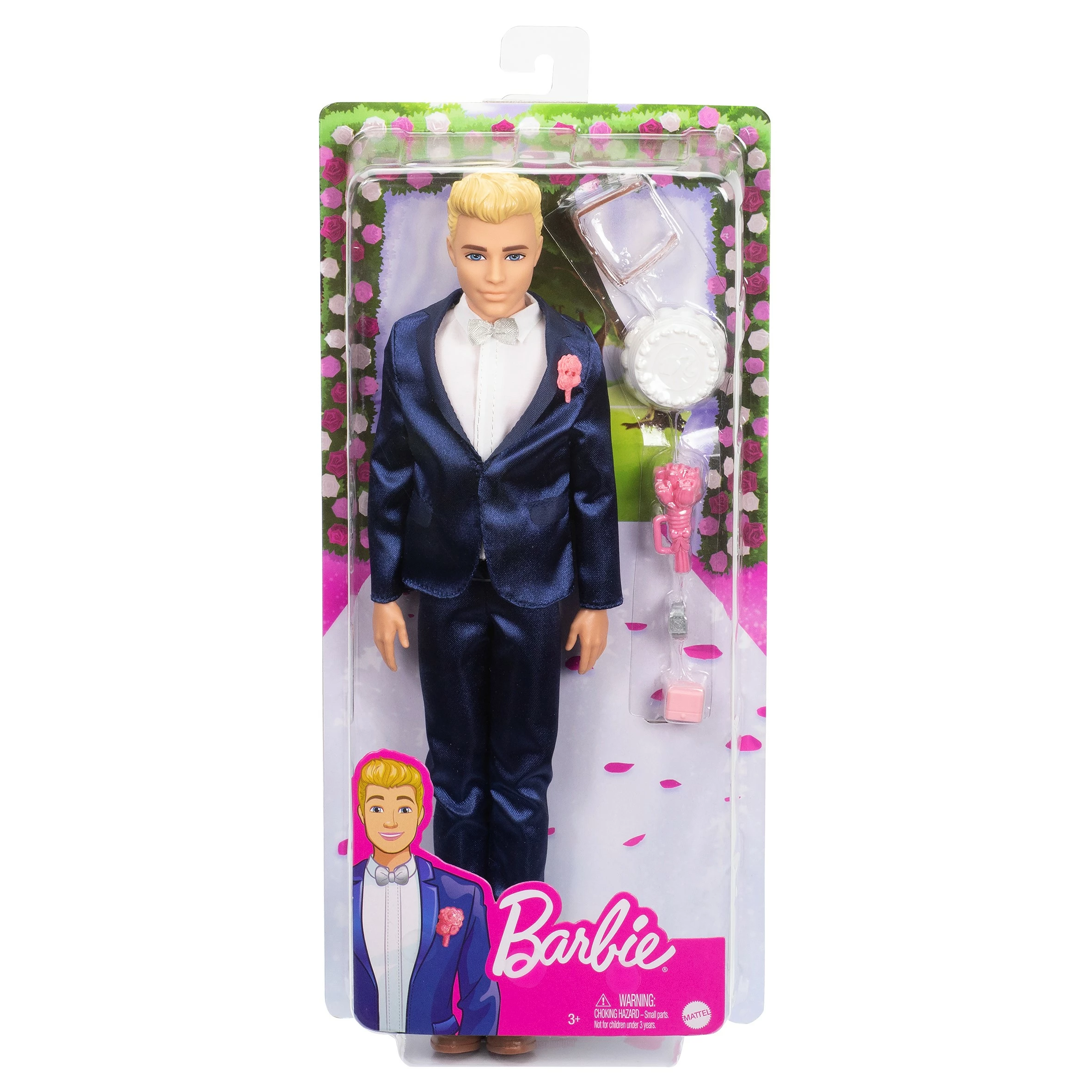 Deze bruidegompop inspireert kinderen om allerlei fantastische verhalen te verzinnen, zoals een sprookjesbruiloft! Ken is klaar voor de grote dag in een droompak met overhemd en strik, satijnen jasje, bijpassende broek en nette bruine schoenen. Een corsage maakt de look compleet, en met de bijbehorende accessoires kan het verhaal beginnen. Sprookjesliefhebbers kunnen ook de andere Barbie poppen en accessoires verzamelen om ze nog meer magische avonturen te laten beleven! De pop kan niet los staan. Wordt geleverd op blisterkaart. Geschikt voor kinderen vanaf 3 jaar.