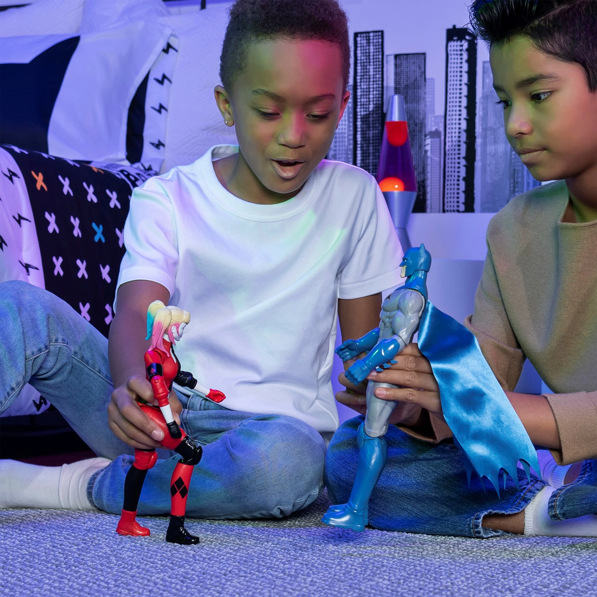 Maak je eigen epische avonturen met superhelden en superschurken met de BATMAN-actiefiguren van 30 cm! Elk actiefiguur beschikt over 11 knikpunten, een stoffen cape een gedetailleerde stripboek-stijl die je favoriete BATMAN-helden en -schurken tot leven brengt! Werk samen met het dynamischer duo Batman en Robin en versla de meest kwaadaardige schurken en criminelen in Gotham City, zoals The Joker en Harley Quinn. Laat je fantasie de vrije loop en positioneer je actiefiguur. Verzin je eigen BATMAN-verhaallijnen en -gevechten! Breid je verzameling BATMAN-actiefiguren uit met Batman, Robin, The Joker en Harley Quinn (elk afzonderlijk verkrijgbaar). Bescherm Gotham City met de BATMAN-actiefiguren van 30 cm! Wordt gelever op blisterkaart en is voor kinderen vanaf 4 jaar.