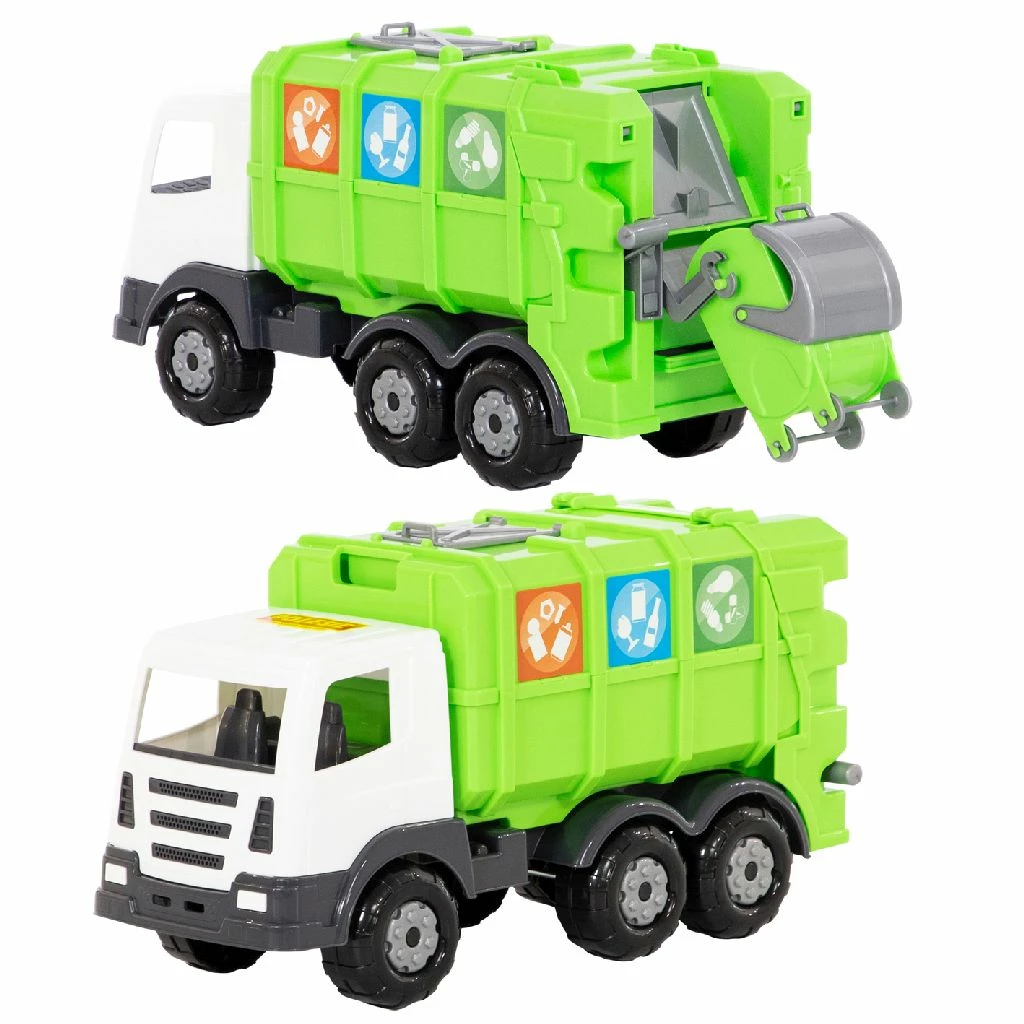 Met deze vuilniswagen van Polesie wordt het opruimen van afval nog makkelijker. Zet de afvalbak vast in de vuilniswagenhouder en trek deze omhoog om de afvalbak in de bak te legen. Afmetingen: 42 ? 16,5 ? 22,2 cm. Vervaardigd van stevig kunststof in groene kleurstelling. Wordt geleverd in net. Geschikt voor kinderen vanaf 3 jaar.