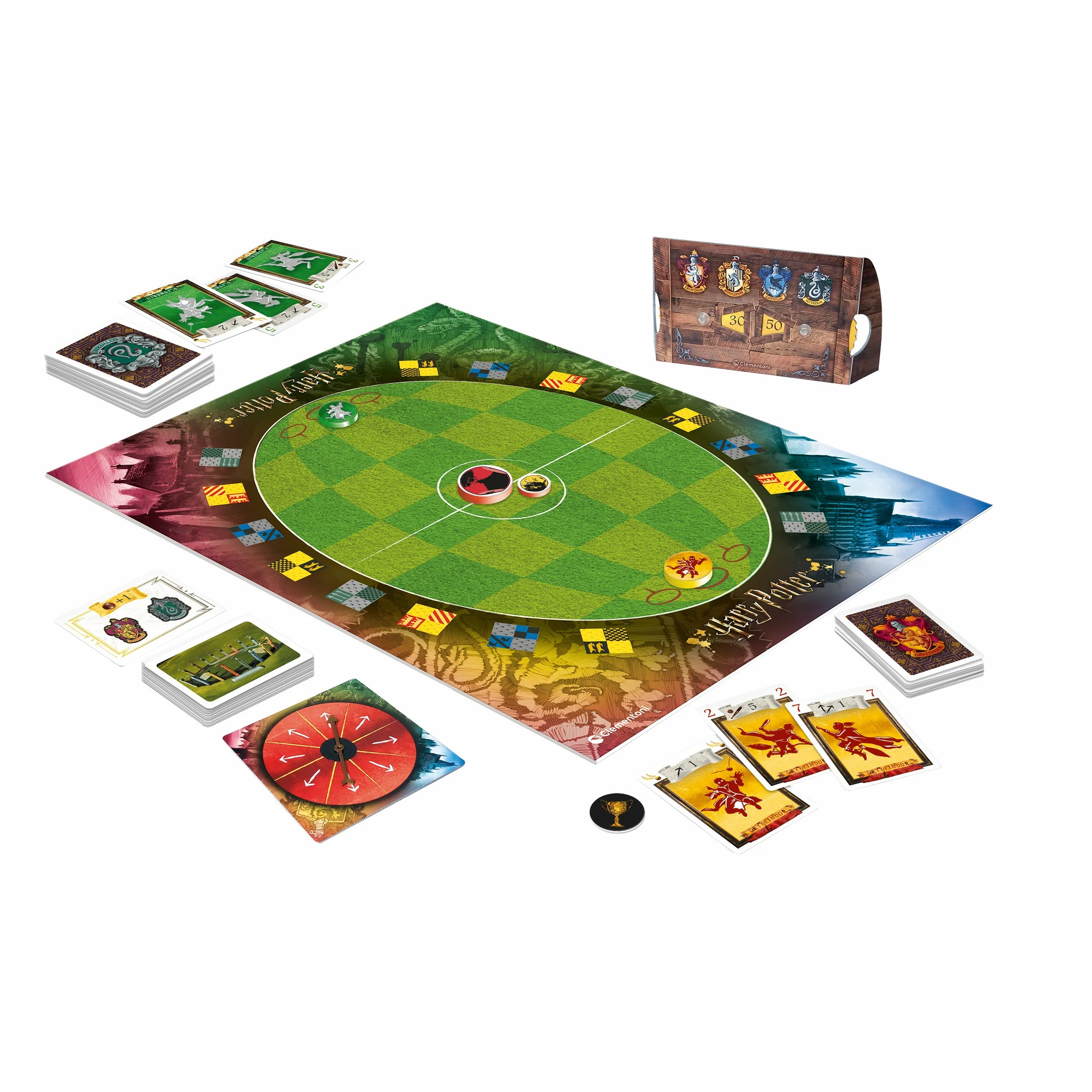 De magie van Harry Potter vervat in een bordspel dat is ontworpen voor wie zin heeft in spannende Zwerkbal-uitdagingen! Het spel bevat 4 stapels kaarten die de afdelingen van Zweinstein vertegenwoordigen, een bord, kaarten met het weer en de conditie van het speelveld, 1 Gouden Snaai-fiche en Zoeker-pion. Elke speler kiest een stapel van een Zweinstein-afdeling, elk met eigen vaardigheden om een Zwerkbal-wedstrijd te spelen. Doel: meer punten scoren dan je tegenstander of de Gouden Snaai bemachtigen! Maar pas op: het weer kan omslaan en de conditie van het veld beïnvloeden. Zo kan niet alleen de wedstrijd veranderen, maar ook de plek van de Gouden Snaai op het Zwerkbalveld-bord! Een leuk spel voor alle fans van Harry Potter om met vrienden spannende uitdagingen aan te gaan! Wordt geleverd in full-colour doos. Geschikt voor kinderen vanaf 8 jaar.