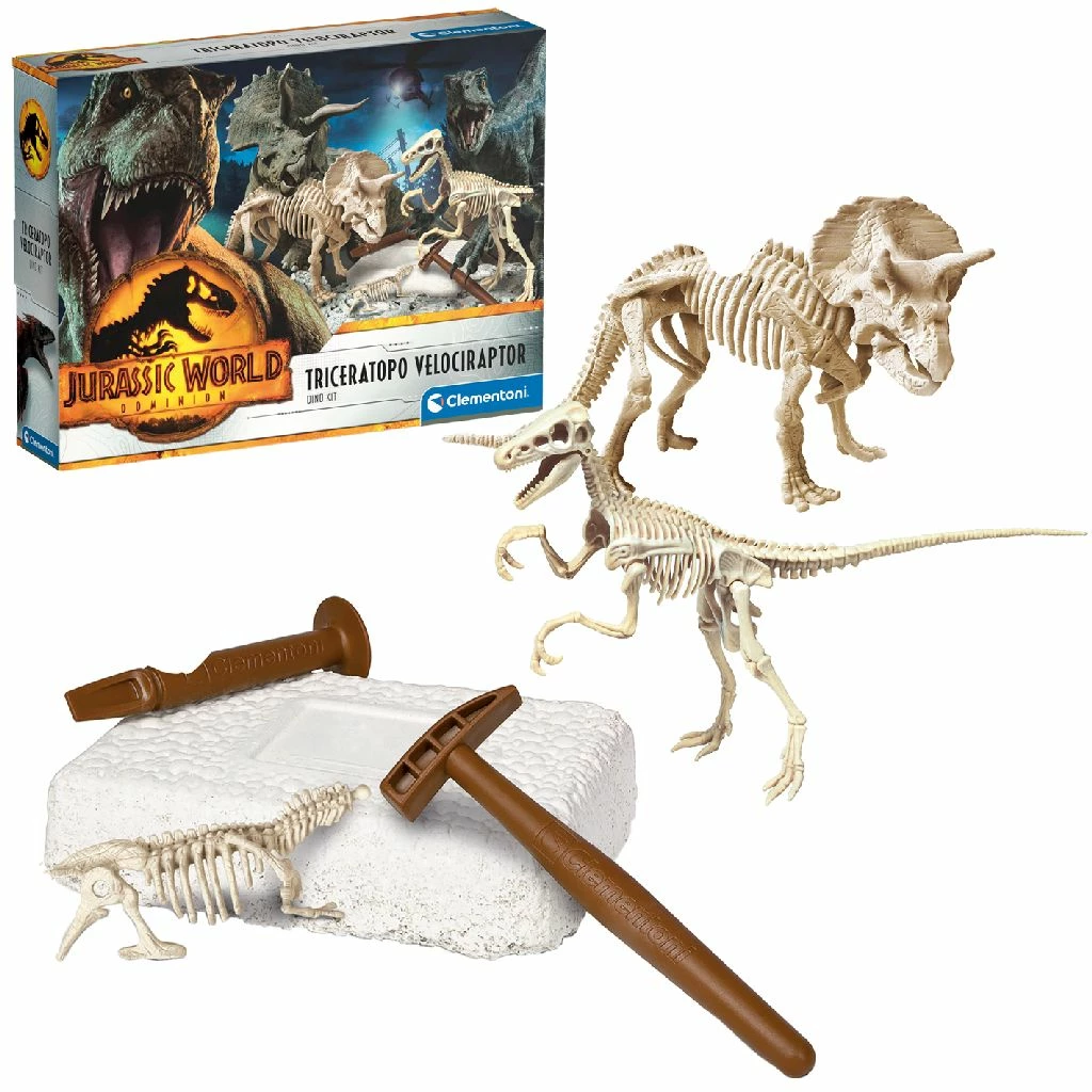 De wereld van Jurassic World is nog nooit zo leuk geweest, dankzij deze kit voor echte paleontologen! Graaf de stenen uit om de skeletten van de beroemdste dinosaurussen uit het verleden weer tot leven te brengen: de angstaanjagende Triceratops en de Velociraptor. De kit bevat een hamer, een beitel en twee stenen om dinosaurusskeletten uit op te graven. Zet de skeletten in elkaar en doe stap in het verleden om Jurassische avonturen te beleven! En als je het licht uitdoet… zie je ze gloeien in het donker! Een leuk en meeslepend spel voor alle fans van Jurassic World 3! Wordt geleverd in full-colour doos. Geschikt voor kinderen vanaf 6 jaar.