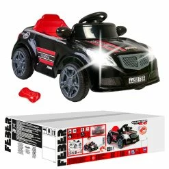 Twinkle Car RC van FEBER. Een stoere zwarte éénpersoons elektrische auto met 12V accu en Radio Control! Met details net als bij echte auto’s: koplampen, voetgaspedaal en elektrische rem. De auto rijdt voor- en achteruit. De radiografische besturing werkt tot 10 meter afstand. Frequentie is 27 MHz. Heeft een maximale snelheid van 3.2 km per uur. Een 12V accu en oplader zijn inbegrepen. De gebruiksduur van de accu is tot 40 minuten per keer! Afmetingen: 94 x 56 x 45 cm. Wordt geleverd in full-colour doos. Geschikt voor kinderen van 3 tot 6 jaar en een gewicht van maximaal 25 kg.