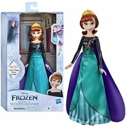 In Disneys Frozen 2 reist Anna ver van huis om haar zus en volk te beschermen. Zelfs in de donkerste tijden, houdt Anna vol en helpt ze uiteindelijk haar koninkrijk te redden, als ze gekroond wordt tot koningin van Arendelle. Kinderen zullen van harte meezingen als de Koningin Anna-pop een instrumentaal fragment laat horen van Some Things Never Change, een liedje uit de Disneyfilm Frozen 2. Op haar jurk zitten fonkelende lichtjes die dansen op het ritme van het liedje. Batterijen zijn inbegrepen, dus het muzikale plezier kan direct na het uitpakken beginnen. Zet de schakelaar op haar rug van Probeer mij op Afspelen, til haar arm op en de muziek begint. Kinderen zullen ook haar op de film geïnspireerde afneembare groen met zwarte jurk, paarse cape, tiara en schoenen geweldig vinden. Verzamel ook ander Frozen-speelgoed zoals de Koningin Elsa-pop, om je collectie Disneypoppen uit te breiden en opnieuw te genieten van musicalavonturen! Wordt geleverd in touchbox. Geschikt voor kinderen vanaf 3 jaar.