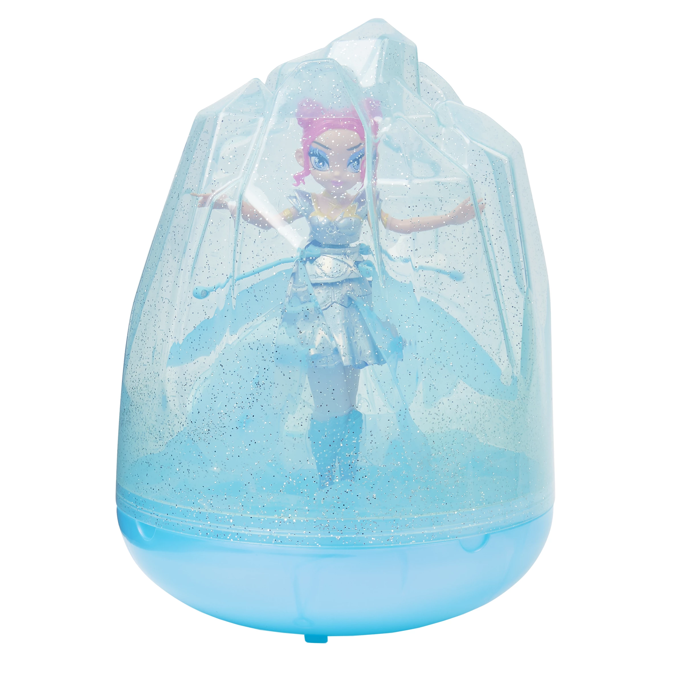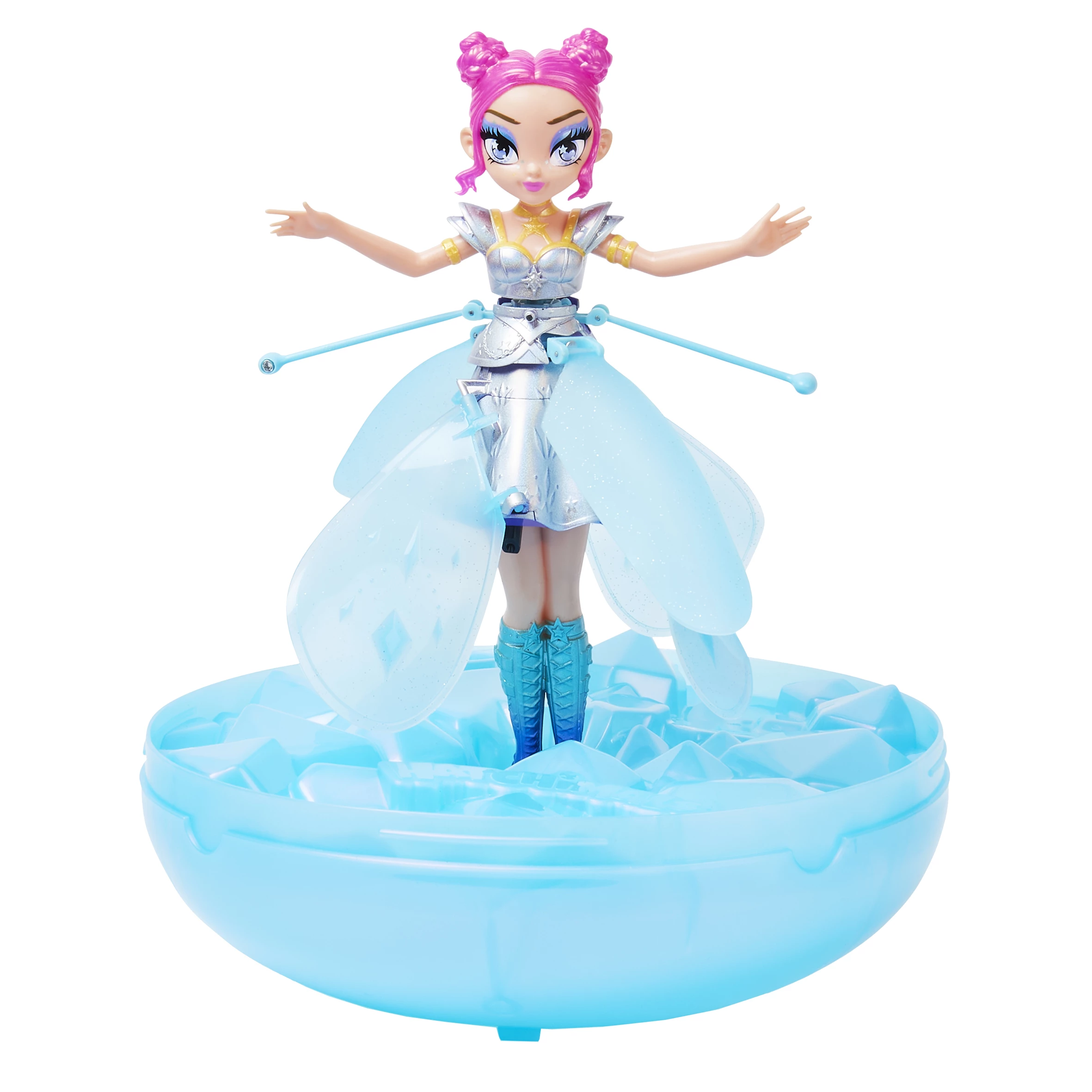Als je Starlight Idol Pixie klaar is om te vliegen, knipperen de LED-lampjes op haar jurk en beginnen haar vleugels te fladderen. Terwijl ze vliegt, glinstert haar jurk en schitteren haar vleugels. De Crystal Flyers Starlight Idol Pixie kan echt vliegen. Laat haar wegvliegen vanaf de basis of til haar de lucht in en bepaal de vliegrichting met je handen. Ze voelt precies of je je handen hoog of laag houdt. Glinsterende vleugels, een regenboogjurk en metallic make-up maken deze mooie Starlight Idol Pixie een must-have voor je collectie. Stel haar tentoon in het Hatchimals-ei met kristal. Crystal Flyers-speelgoed is op veiligheid getest. Als je de vleugels van je Pixie aanraakt terwijl ze vliegt, stopt ze automatisch. Maar je kunt je Pixie ook bij haar benen pakken om haar tijdens het vliegen veilig te verplaatsen. Wordt geleverd in een diamantvormige verpakking met sleeve. Geschikt voor kinderen vanaf 6 jaar.