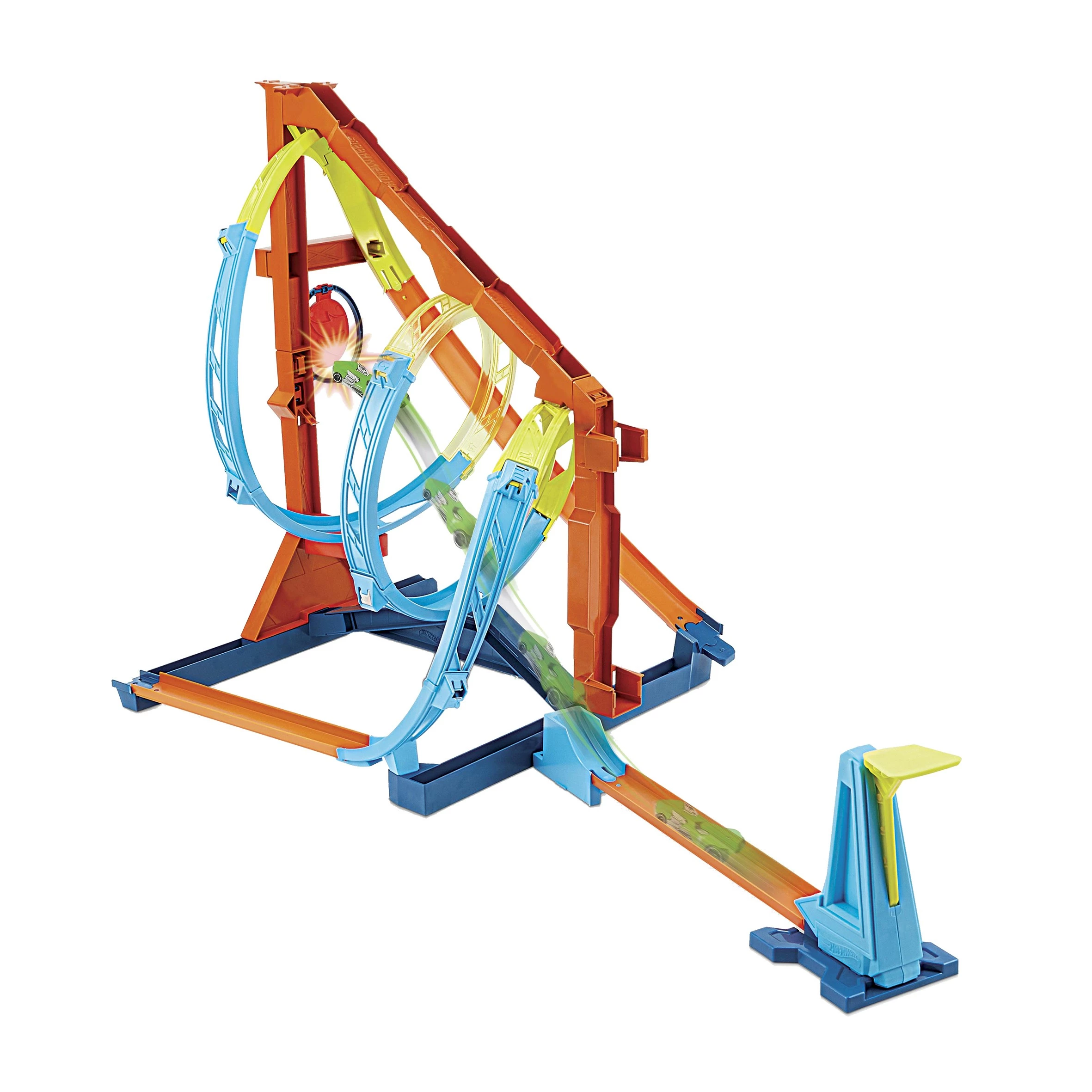 De Hot Wheels Track Builder Unlimited Kurkentrekker speelset zit vol duizelingwekkende opwinding: Kinderen lanceren hun auto’s door de spiraal van de kurkentrekker met drie lussen om het doel aan het eind te raken! Verander de opstelling om auto’s door het midden van de kurkentrekker direct op het doel te richten. Ga beide uitdagingen aan om de ultieme kampioen te worden! De basis heeft plek voor de lanceerder, het doel en de baandelen voor eenvoudige en handige opslag. Inclusief 1 Hot Wheels-auto. Kan aan andere sets worden gekoppeld. Wordt geleverd in full-colour box. Geschikt voor kinderen vanaf 6 jaar.