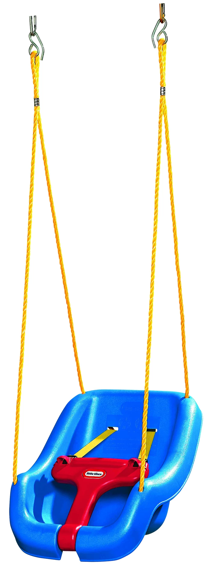 Little Tikes 2-in-1 schommel, geschikt voor kinderen vanaf 9 maanden. In blauwe kleurstelling. Met verstelbare gordels, hoge zijkanten en rugsteun voor optimale veiligheid. De T-bar kan worden verwijderd als het kind ouder is. Het product is geschikt tot 48 maanden. Wordt geleverd in kartonnen display van 4 stuks.