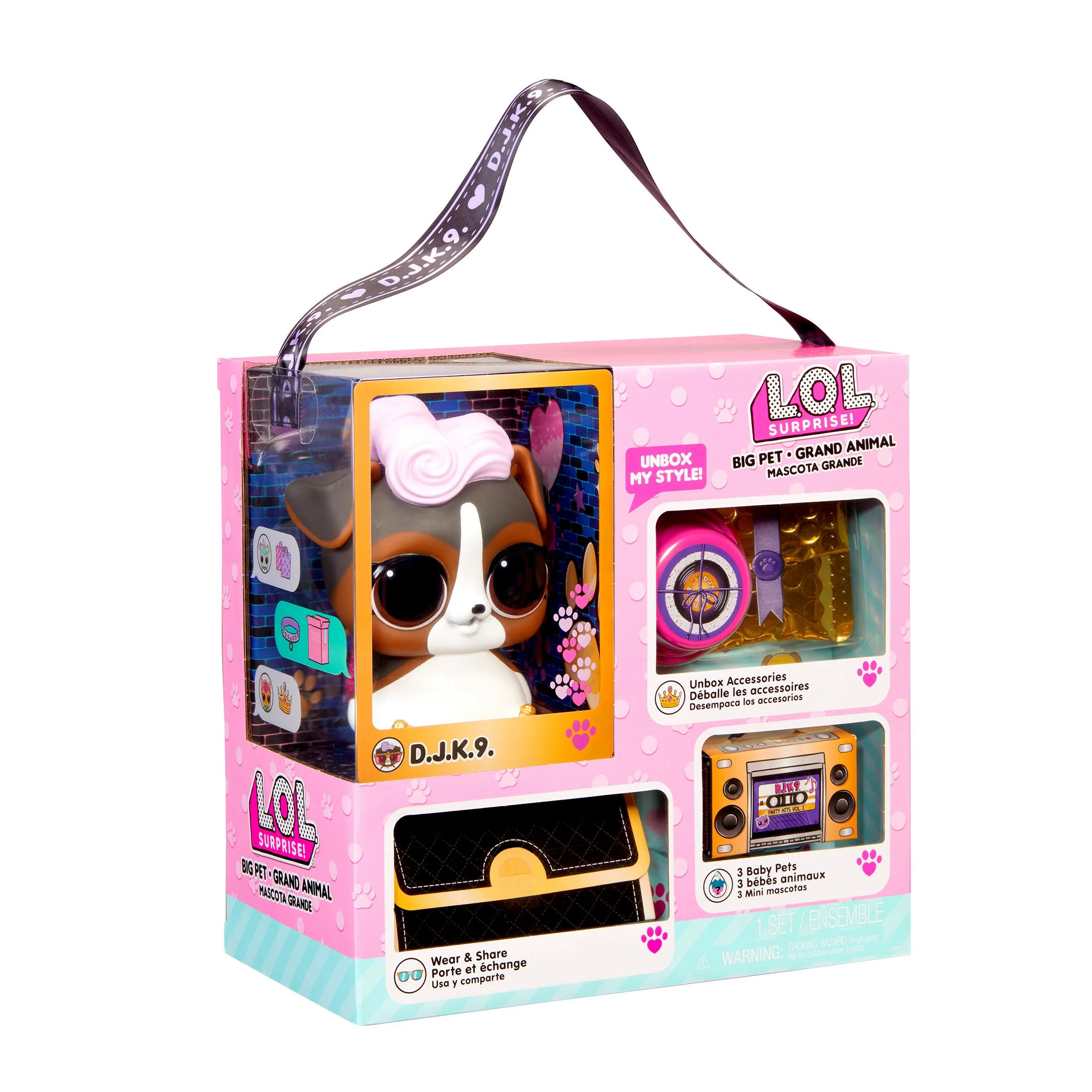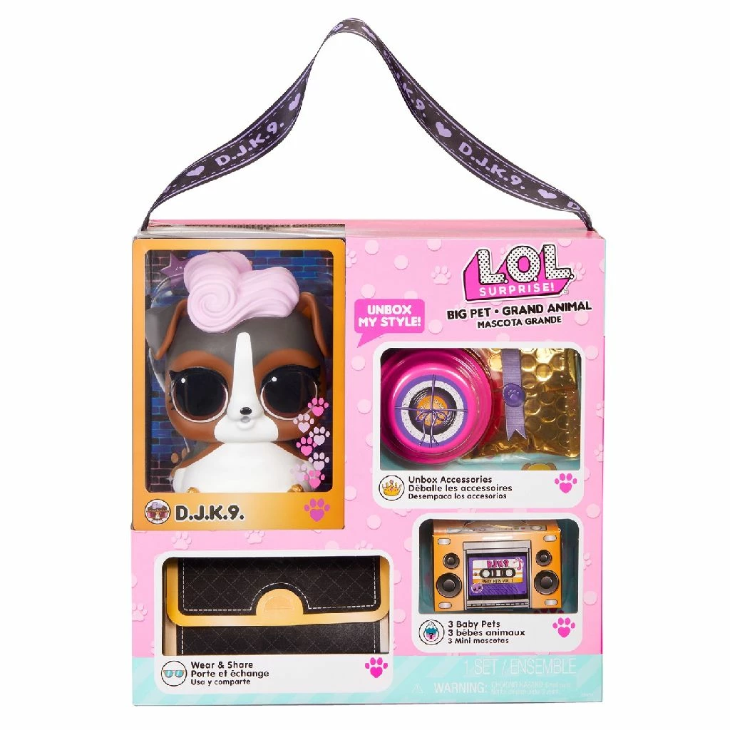 LOL Surprise Big Pet DJ K.9. met 15 verrassingen inclusief bril om te dragen en delen, halsketting en dierenbaby’s. O, nee! De LOL Surprise-poppen waren op een topgeheime missie toen hun diertje verdween! Pak 15 verrassingen uit met LOL Surprise Big Pet DJ K.9., inclusief dierendraagmand met 2 dierenbaby’s en 1 dierenbabybedeltje of voedselbabybedeltje erin. Wat zul jij vinden? Zoek bovendien in de Eye Spy-serie naar verrassende aanwijzingen om hun dier te vinden! L.O.L. Surprise! Big Pets bevatten talloze verrassingen binnenin en zijn inclusief dragen-en-delen-accessoires voor jou! Zet de spionagebril uit de Eye Spy-serie op om codes te vinden en verrassingen te ontgrendelen en deel dan je bril met je Big Pet! En haar halsketting wordt een armband voor jou! Inclusief 1 vorkbeen, 1 telefoonbotje, 1 waarzeggershart, 1 baby om te onthullen. Je kunt DJ K.9. als een rugzak dragen of gebruiken als een spaarvarken. Er zit ook een draagtasje bij. Verzamel ze allemaal! Wordt geleverd in windowbox met leuk handvat.