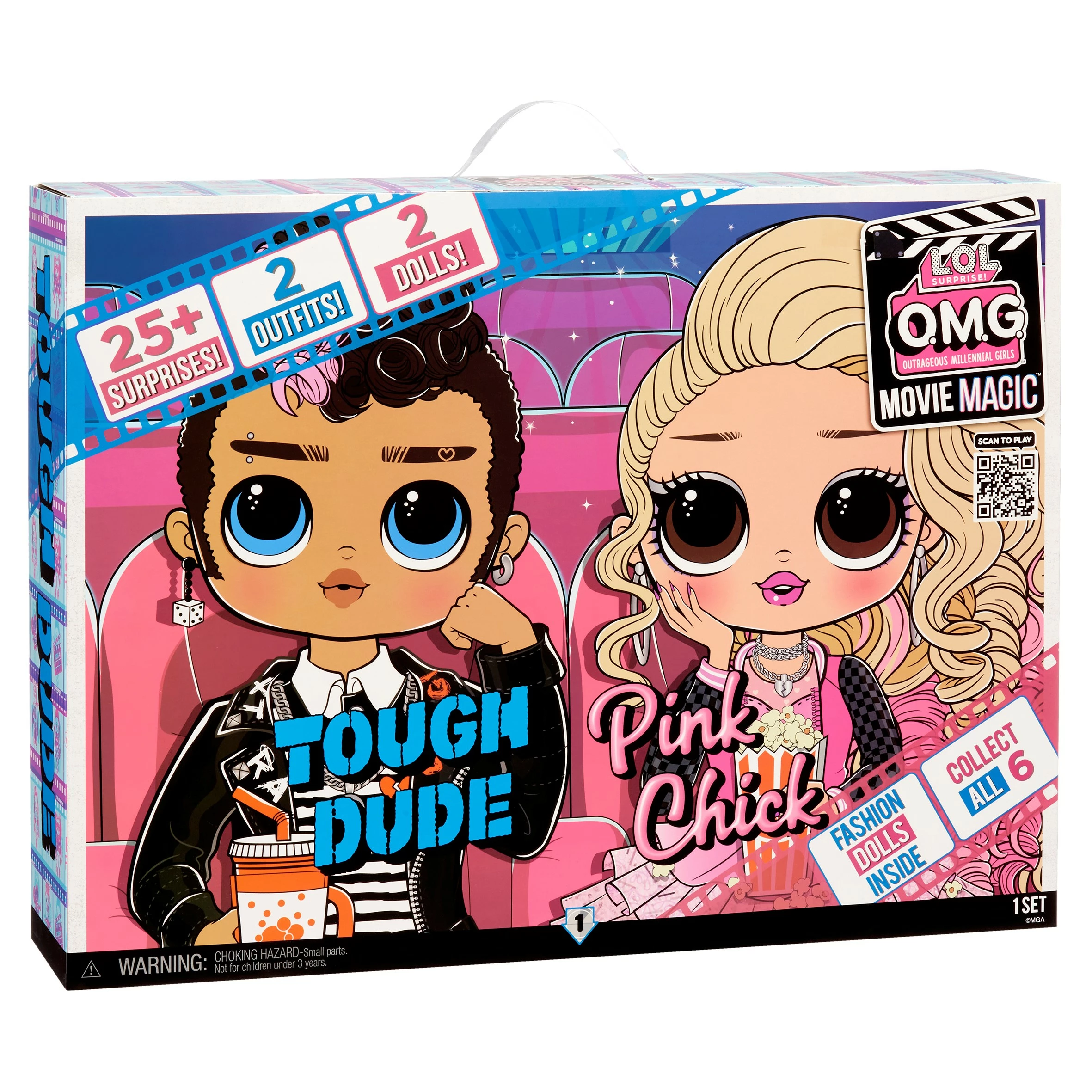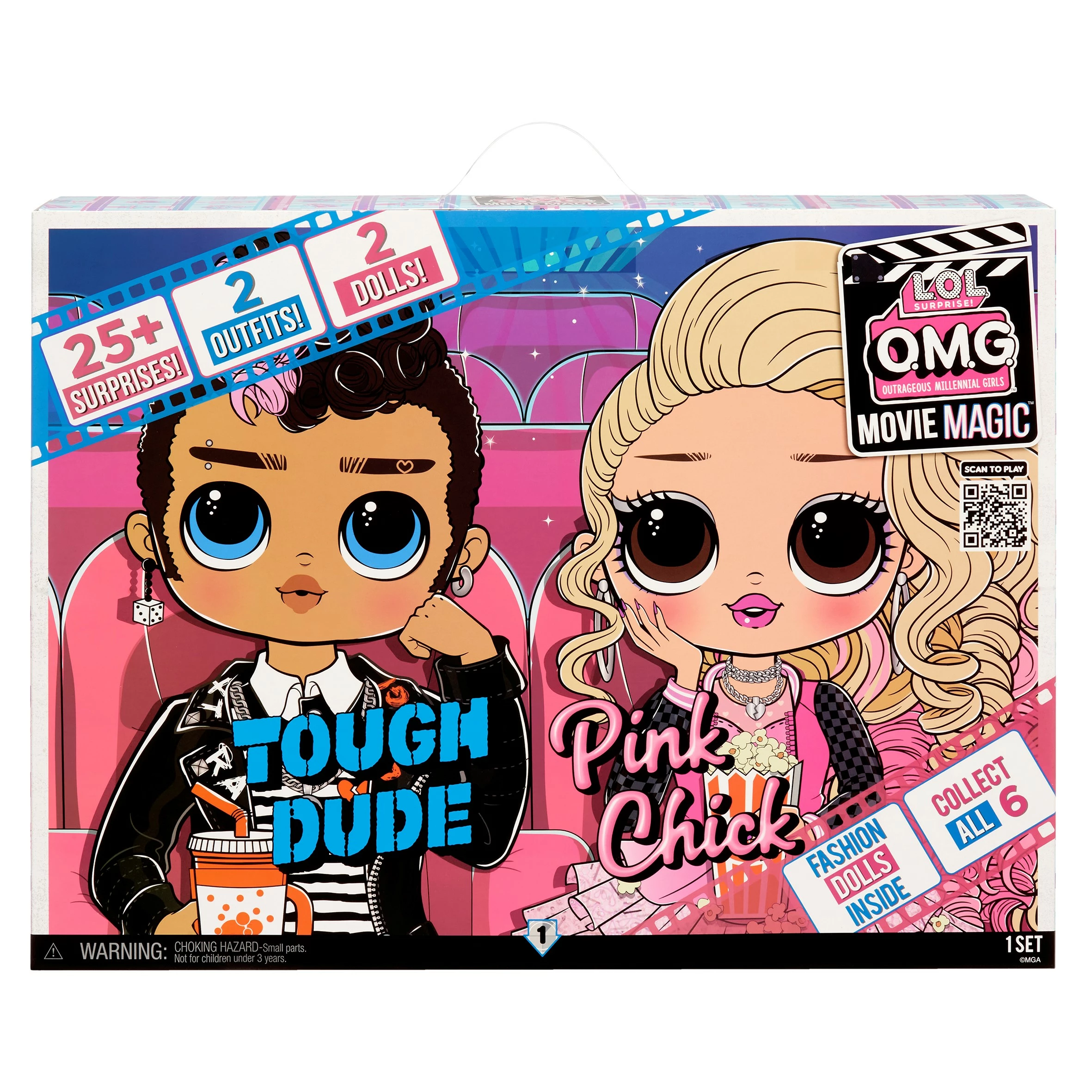 Vind jij het geweldig om zelf films te maken met de 4 LOL Surprise OMG Movie Magic-modepoppen en heb je nog meer filmtalenten nodig? Dit is je kans om de verzameling te voltooien met dit pakket van 2 met Tough Dude en Pink Chick! Pak 25 verrassingen uit voor elk van de twee LOL Surprise OMG Movie Magic-modepoppen, plus een 3D-bril. Tough Dude en Pink Chick hebben supermooie gezichtjes, gestyled haar en beweegbare ledematen. Pak de unieke filmscènes uit en verzamel de filmscripts van alle 6 de OMG-poppen om het verhaal te voltooien! Trek Tough Dude en Pink Chick TWEE megacoole outfits aan en vul aan met de accessoires. De verpakking van elke pop is een herbruikbare speelset die je kunt gebruiken als filmset of bioscoop. Inhoud: 2 LOL modepoppen, 4 outfits, schoenen, accessoires, 3D-bril, filmscènes, filmscripts, hoedendozen, haarborstels, kledinghoezen, stickers, kledinghangers, poppenstandaarden en een herbruikbare verpakking als speelset. Elke pop is gebaseerd op een specifiek filmgenre.