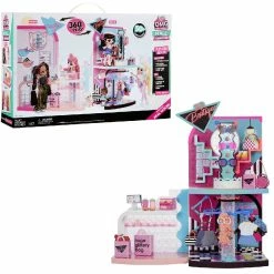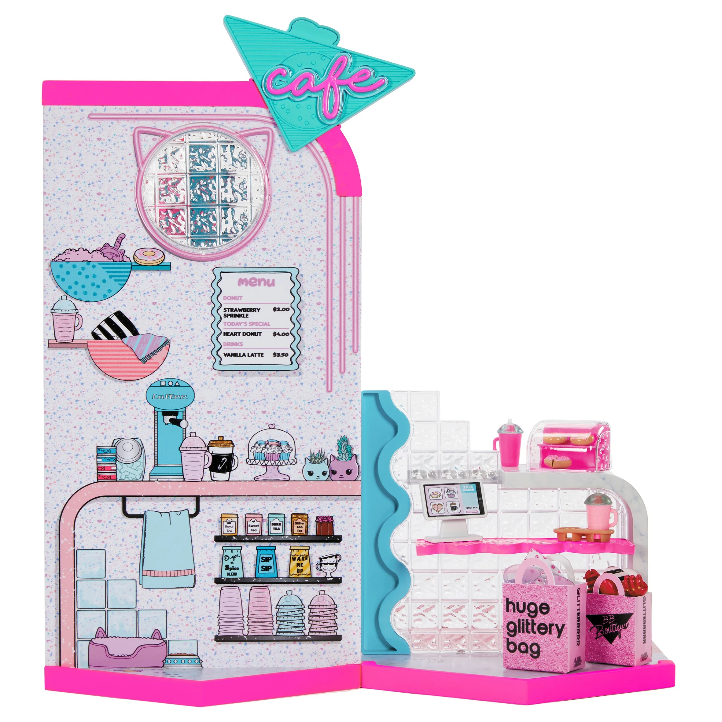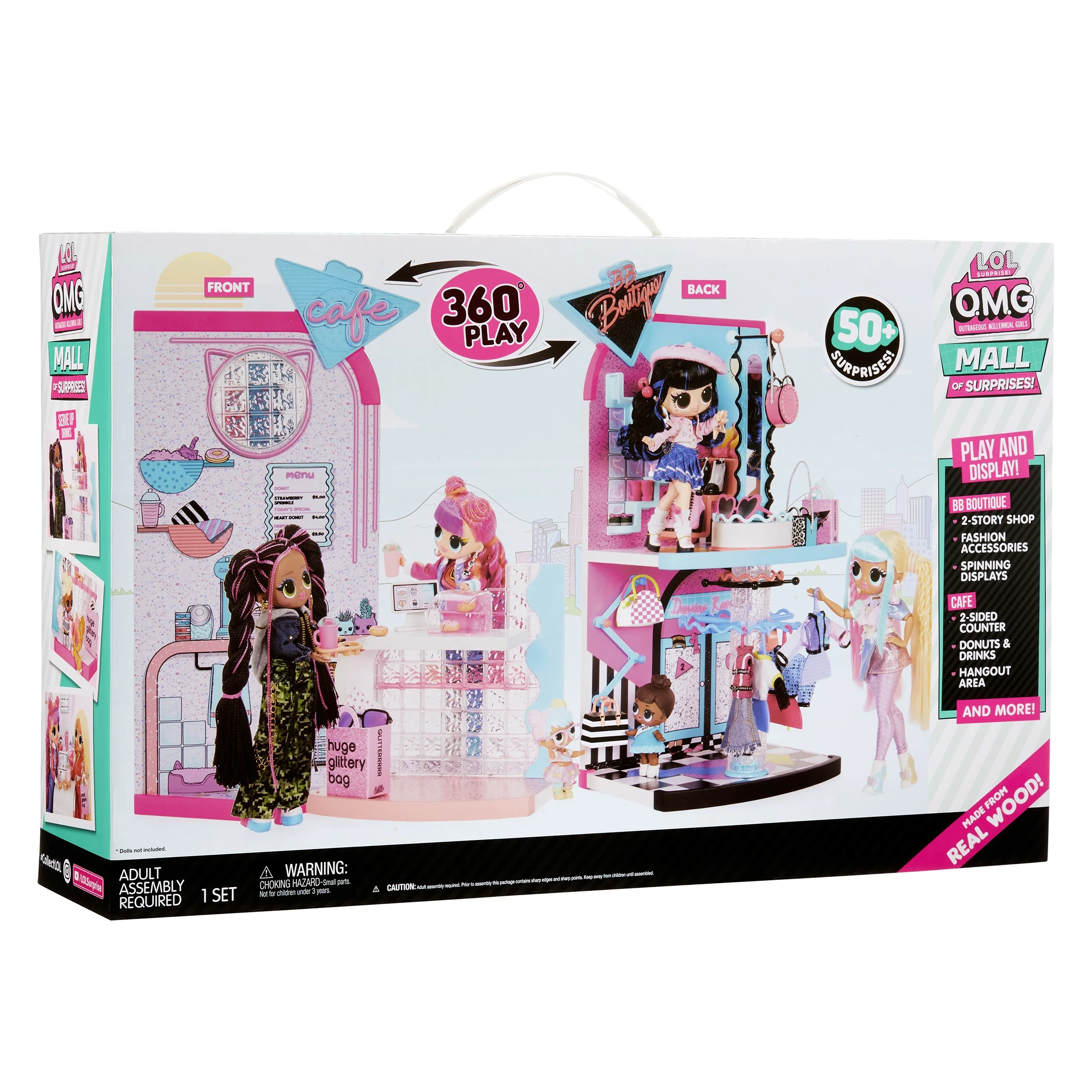 Voor de ultieme plek waar je L.O.L. Surprise-poppen kunnen shoppen tot ze droppen, neem je ze mee naar het L.O.L. Surprise! O.M.G. Winkelcentrum vol verrassingen! Pak 50+ verrassingen uit met deze gloednieuwe speelset, die interactieve glamoureuze speelopties biedt in 360 graden. De B.B. Boutique met twee verdiepingen bevat kledingrekken die echt kunnen draaien om alle inbegrepen opvallende mode-items en accessoires te showen. Het café wordt geleverd met een dubbelzijdige toog, klaar om verschillende heerlijke donuts en drankjes te bestellen en serveren. In het L.O.L. Surprise! O.M.G. Winkelcentrum vol verrassingen kun je shoppen en spelen met alle L.O.L. Surprise Tweens-, O.M.G.- en verzamelbare poppen. Combineer deze speelset met de L.O.L. Shine On Salon en spa en het O.M.G. House of Surprises-poppenhuis om een compleet nieuwe wereld vol speelplezier te creëren voor al je mode- en verzamelpoppen!