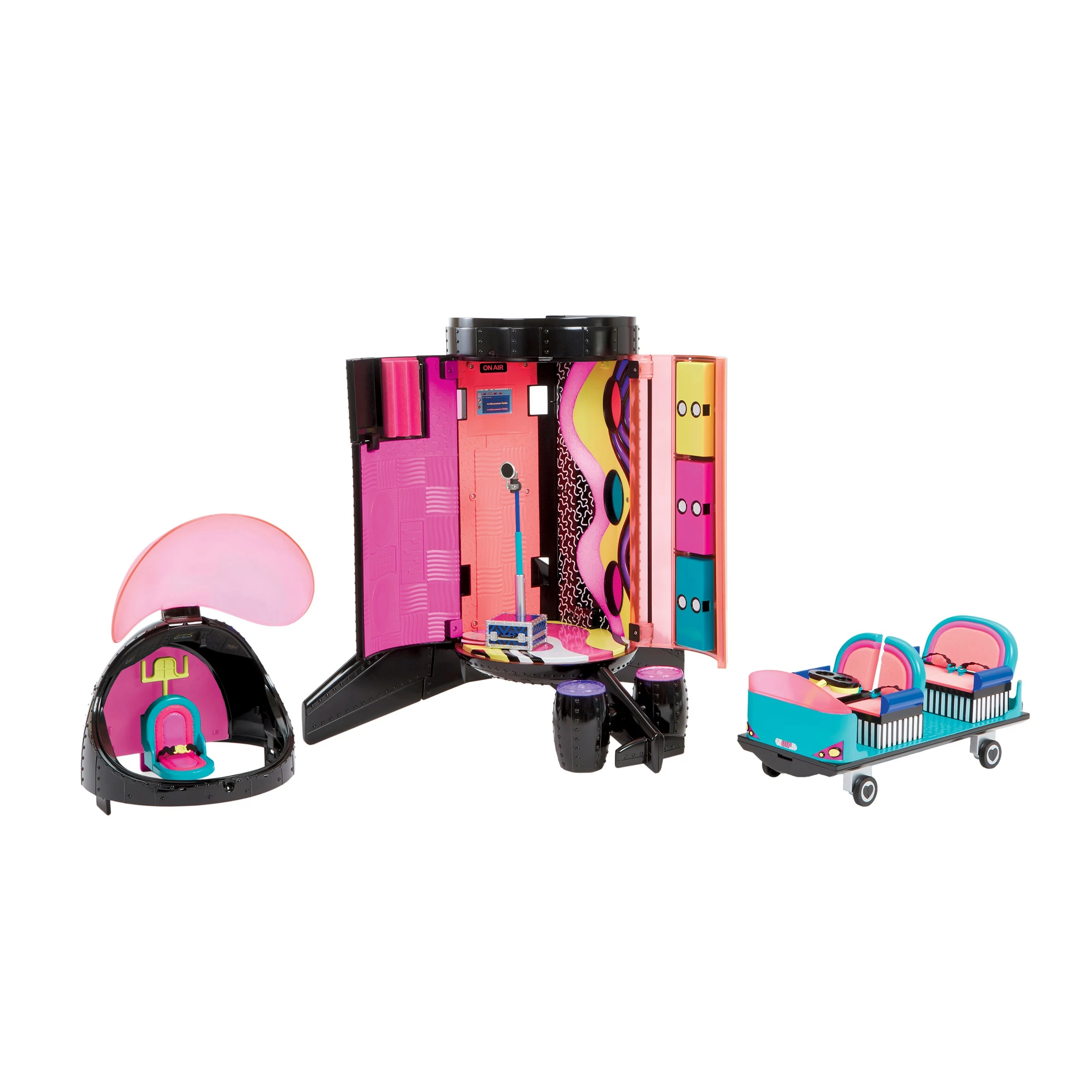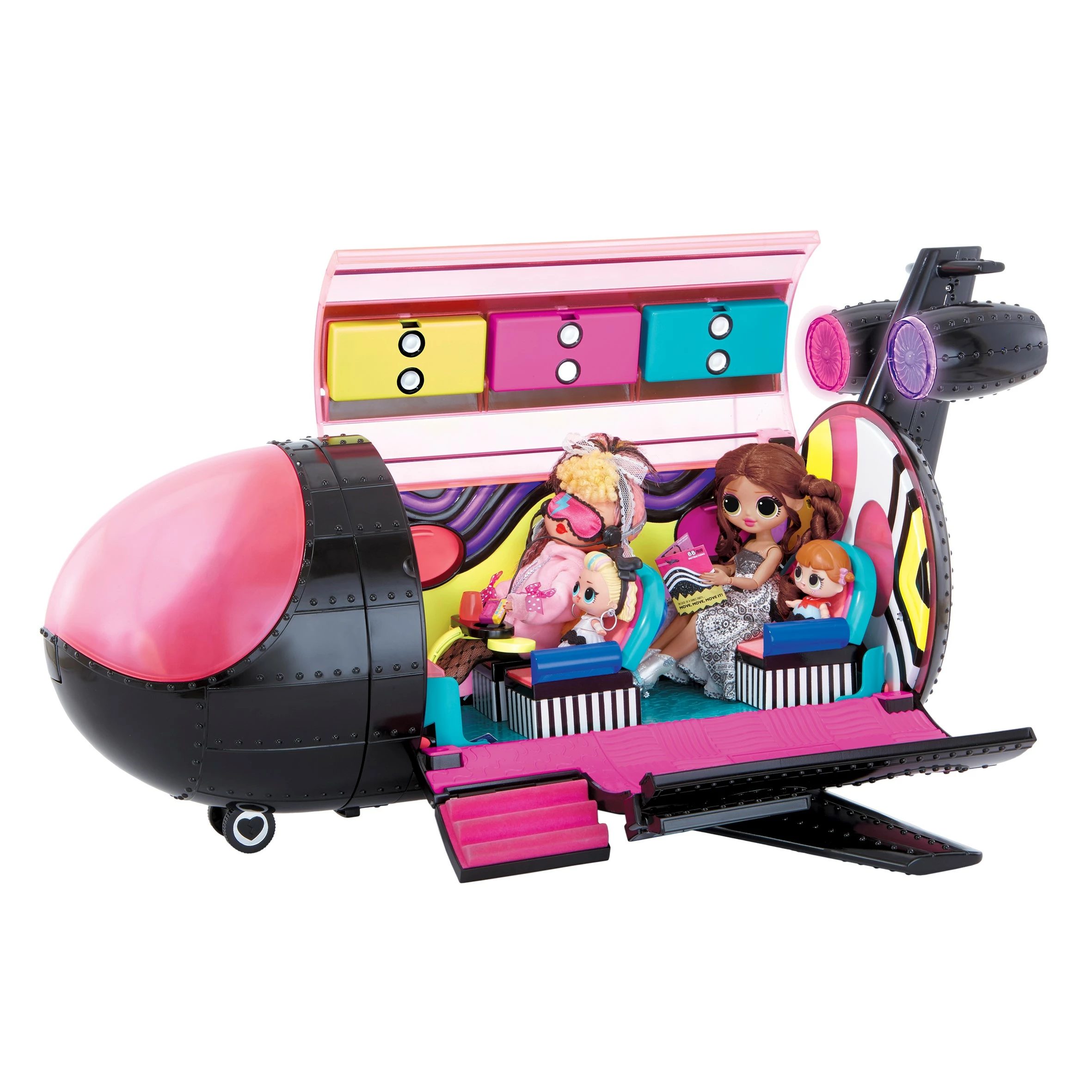Deze 4-in-1-speelset kan transformeren in een: vliegtuig, auto, opnamestudio en DJ cabine. Pak 50 verrassingen uit met echt werkend licht en geluid, serveerwagentje met borden en bekers, rolkoffers, bagagevakken die open en dicht kunnen, stoelriemen en meer! Geschikt voor L.O.L. Surprise! O.M.G.-modepoppen en alle andere L.O.L. Surprise!-poppen. Het vliegtuig vervoert onze B.B.’s naar de So Extra Tour. Als ze landen, trek je het stoelgedeelte uit om van het vliegtuig een auto te maken. Maar ineens krijgen ze inspiratie. Deze muzikale meiden moeten meteen een nieuwe song opnemen! Maak los en draai het vliegtuig op zijn kant om er een opnamestudio en DJ cabine van te maken. De voorste stoelen kunnen draaien. Als het tijd wordt om te slapen, kantel je de stoelen achterover. Inclusief accessoires: 2 nekkussens, 2 slaapmaskers, 2 microfoons, 2 headsets, 2 dekens, tabletaccessoire, ticket en paspoort. Wordt inclusief 6 AG13 knoopcelbatterijen geleverd in full-colour doos. Geschikt voor kinderen vanaf 4 jaar.