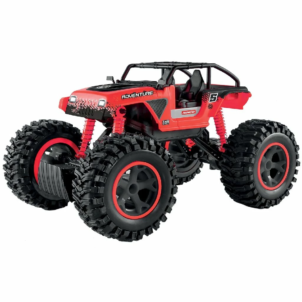 Ninco Adventure 4×4 off-road auto: een echte alleskunner! Met allerlei details: anti-kantelstangen, gedetailleerde cockpit, achteruitkijkspiegels en differentieelboxen. Vervaardigd in ABS-kunststof, wat een enorme crashweerstand biedt! Schaal 1:10. De maximale snelheid is 12 km/h. Met 2,4 GHz-transmitter, zodat jij en maximaal 20 vrienden samen kunnen racen. De auto is uitgevoerd in stoere rode kleurstelling. Met onafhankelijke schokdempers waarmee je elk obstakel kunt overwinnen! De geweldige rubberbanden zorgen voor een perfecte grip op elke ondergrond. Productafmetingen: 23 x 15 x 12,5 cm. Inclusief krachtige 1.500 mAh Li-Ion-batterij USB-oplader: na het laden kun je er wel 25 minuten aan één stuk mee rijden. Exclusief 2 AA-batterijen voor de zender. In full-colour windowbox. Geschikt voor kinderen vanaf 6 jaar.