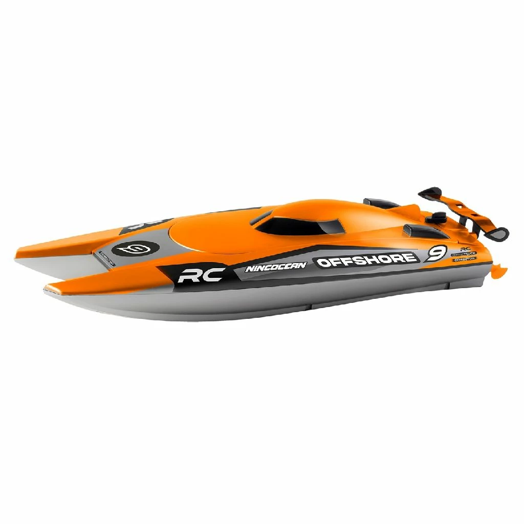 Offshore boot van Ninco: een prachtige catamaran met fraai dessin. Snel en gemakkelijk te bedienen. Deze oranje boot kan een snelheid bereiken van 25 km per uur over het water. Voorzien van een oplaadbare Li-ion batterij. Exclusief 4 AA-batterijen voor de controller. Afmetingen van het product: 31 x 6 x 9,5 cm. Eenvoudig bedienbaar en is geschikt voor ook de kleinere kinderen, vanaf 6 jaar.