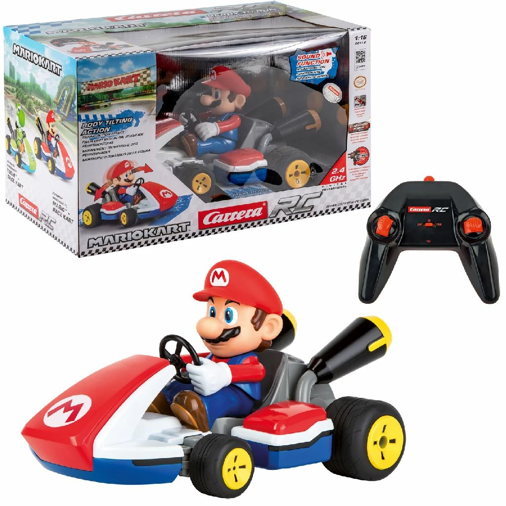 Ga rechtstreeks van het videospel naar het echte leven met deze gave radiografisch bestuurbare Mario Kart van Carrera! De auto maakt geluidseffecten die uit de echte Mario spelserie komen. Dankzij de 2,4 GHz technologie kun je probleemloos lange afstanden overbruggen. De auto is op afstand bestuurbaar met behulp van een controller. De benodigde batterijen voor zowel de controller als de auto worden bijgeleverd. Ideaal als kindercadeau, maar ook heel leuk voor volwassenen!