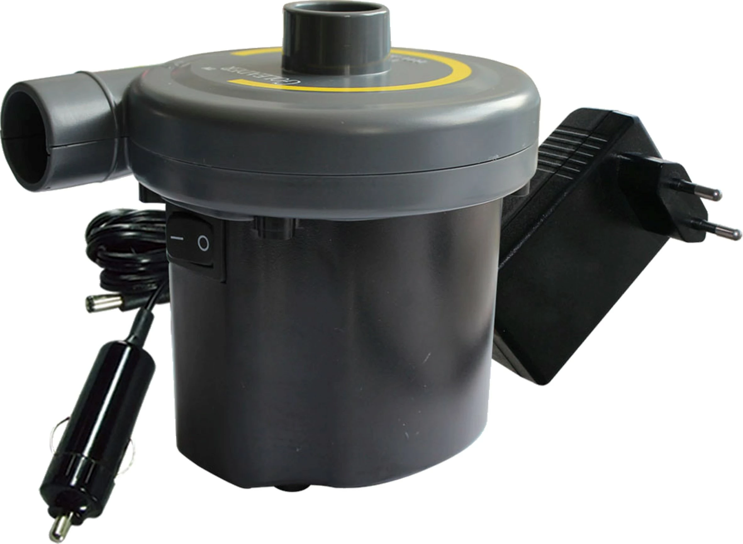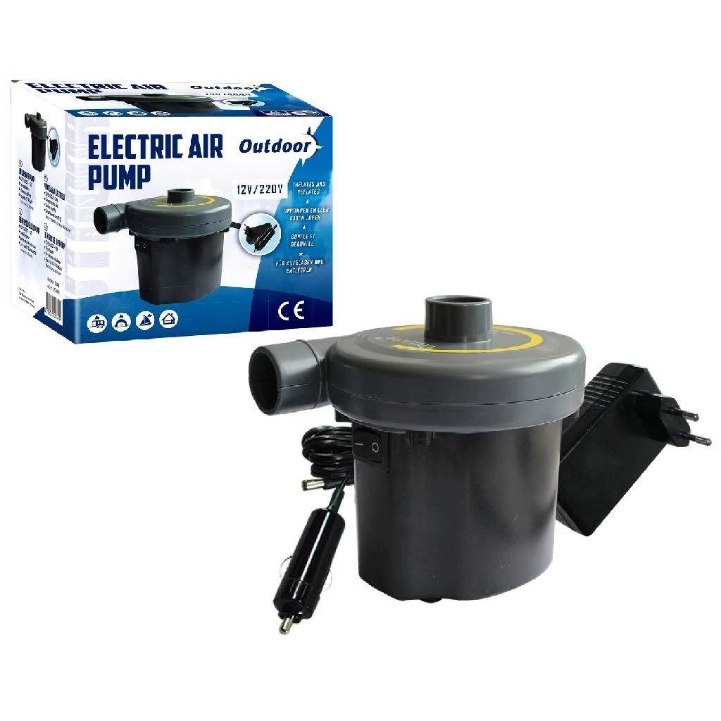 Extra sterke 12V/220 Volt Outdoor electrische luchtpomp, geschikt voor het opblazen van bijvoorbeeld boten en luchtmatrassen. Met handige 12V plug voor de sigarettenaansteker van de auto. Voorzien van 3 verschillende verloopstukjes. Kan ook het artikel weer leegblazen na gebruik. Geschikt vanaf 14 jaar. Wordt inclusief uitgebreide gebruiksaanwijzing geleverd in full-colour doos.
