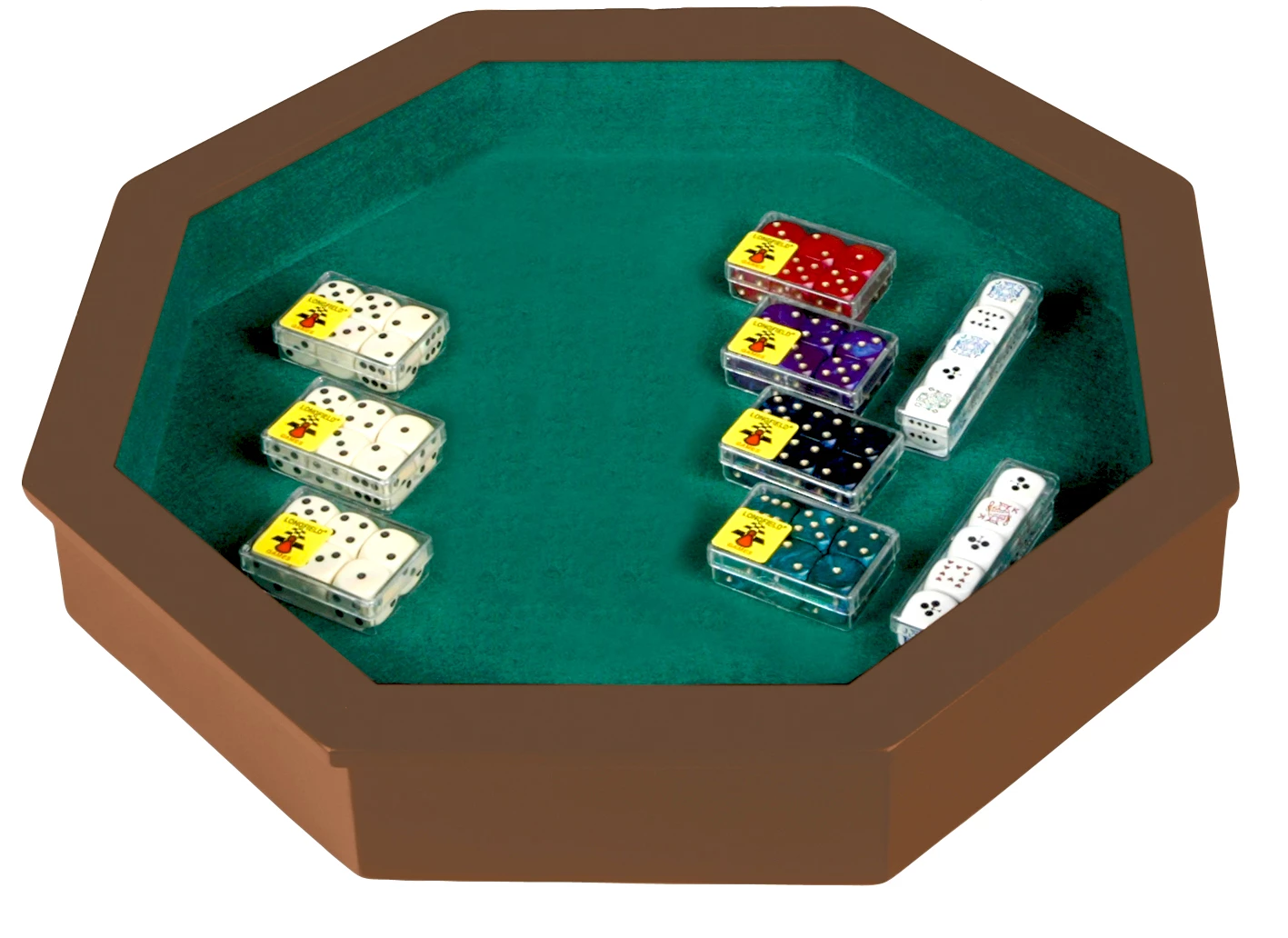 8-kantige pitjesbak, vervaardigd van hout. Voorzien van een vilten inleg.