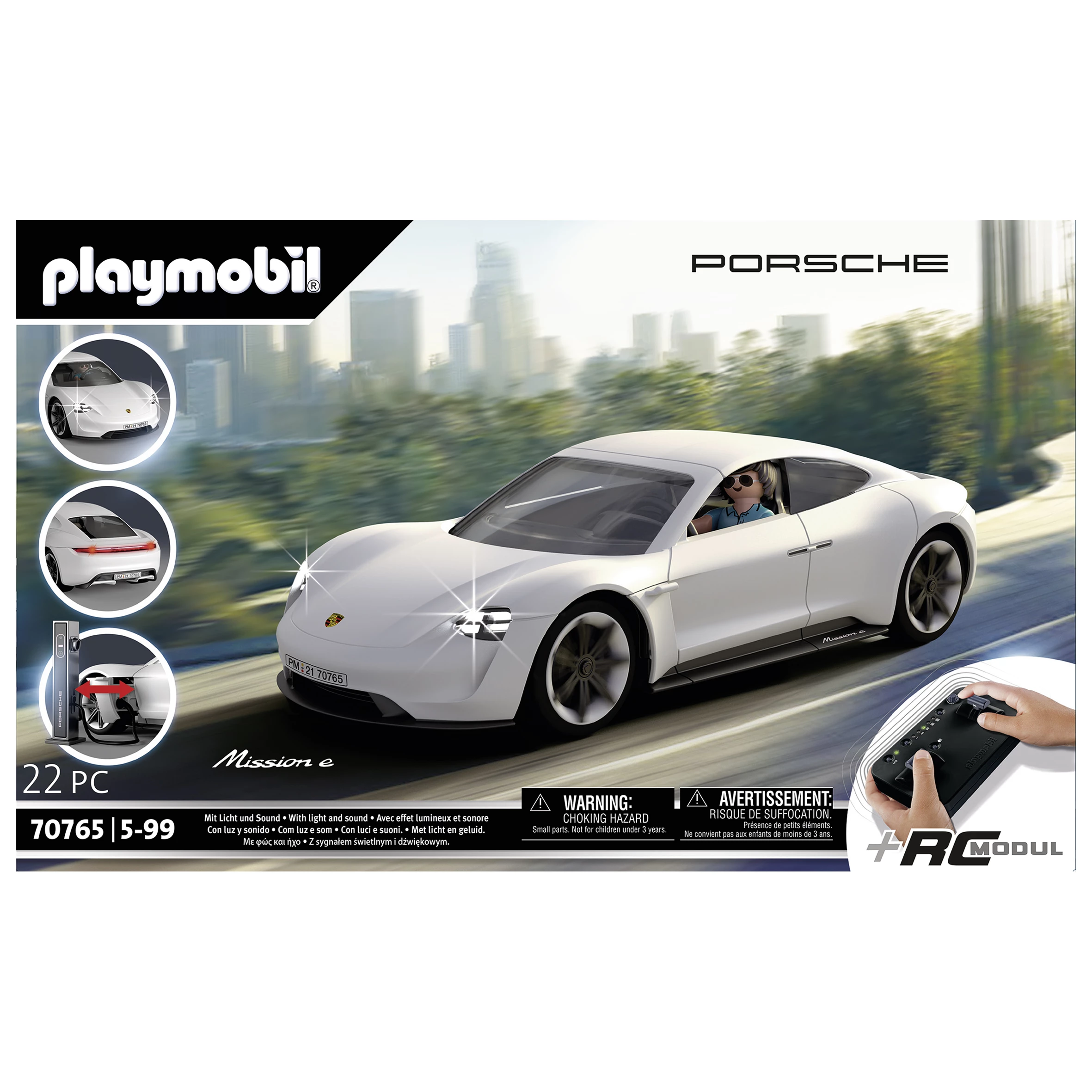 PLAYMOBIL 70765 PORSCHE MISSION E. Elektrisch voertuig met RC-besturing, coole lichteffecten en laadstation. 4 x 1,5 V AAA-batterijen vereist voor lichtmodule. 3 x 1,5 V AAA-batterijen vereist voor afstandsbediening. Afmetingen voertuig: 27,5x11x7,5cm (LxDxH). 22-delig. Geschikt voor kinderen vanaf 5 jaar.