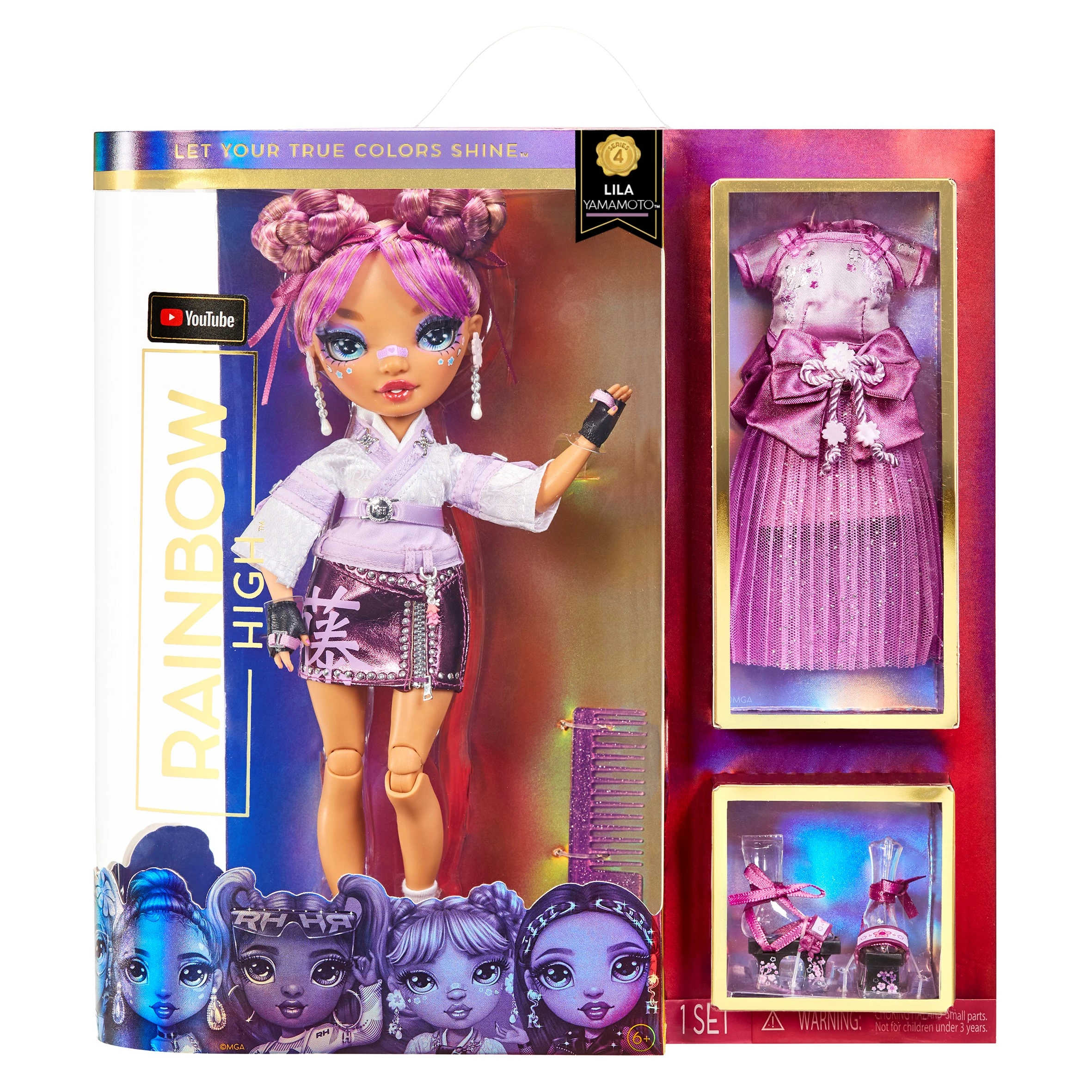 Rainbow High-modepop Lila Yamamoto, met een uniek ontwerp. Ze is van top tot teen gekleed in het zacht paars. Haar mode is voorzien van schitterende details en ze heeft prachtig kort haar met twee knotjes met vlechten, lange wimpers en glazen ogen. Lila heeft 2 complete poppenoutfits met poppenkleding, -schoenen en -accessoires. Trek haar elke look aan of mix en match de outfits en accessoires. Zo stimuleer je je fantasie en kun je verhalen verzinnen voor extra speelplezier. Inhoud: modepop, 2 complete poppenoutfits, 2 paar poppenschoenen en poppenaccessoires: poppenkam, 2 kledinghangers en een poppenstandaard. Verzamel een regenboog aan adembenemend mooie Rainbow High-modepoppen! Wordt geleverd in windowbox. Geschikt voor kinderen vanaf 6 jaar.