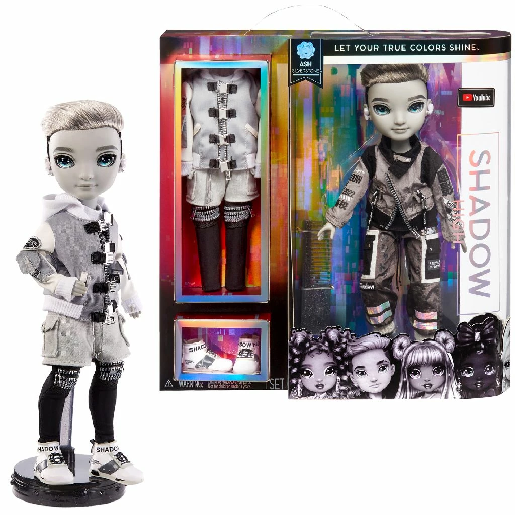 Rainbow High Shadow High Doll Ash Silverstone. Rainbow High heeft officieel zijn gelijke gevonden. Shadow High heeft er genoeg van dat Rainbow High steeds alles wint (en manipuleert). Dit jaar gaat Shadow High niet langer meer de kunstacademie zijn die in de schaduw staat. Hier barst het van het talent en de creativiteit is weergaloos. Verwacht het onverwachte van de leerlingen in de schone kunsten van Shadow High. Deze leerlingen mogen dan floreren in de schaduw, ze laten wel het mooiste van zichzelf zien. Wordt geleverd in windowbox. Geschikt voor kinderen vanaf 6 jaar.
