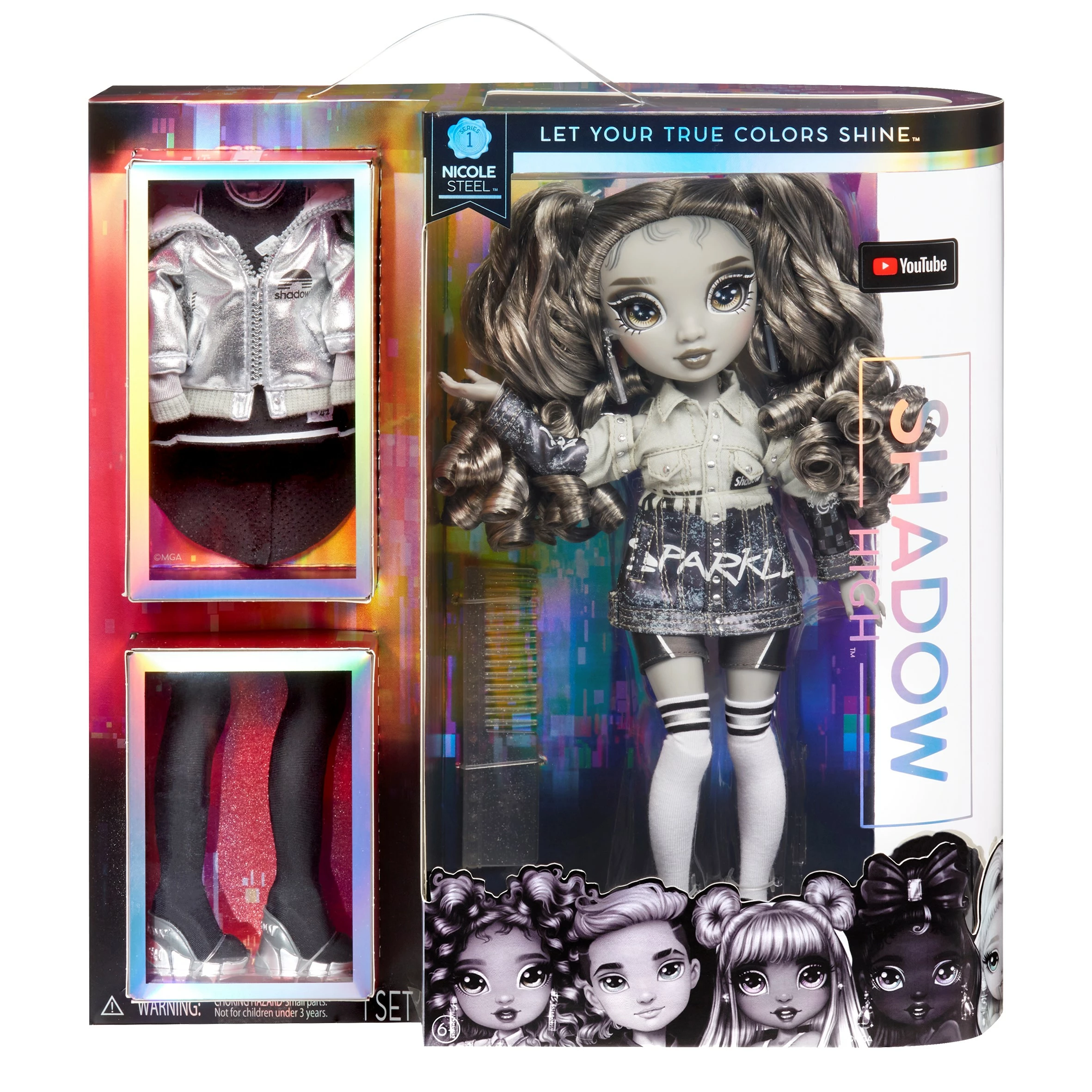 Rainbow High Shadow High Doll Nicole Steel. Rainbow High heeft officieel zijn gelijke gevonden. Shadow High heeft er genoeg van dat Rainbow High steeds alles wint (en manipuleert). Dit jaar gaat Shadow High niet langer meer de kunstacademie zijn die in de schaduw staat. Hier barst het van het talent en de creativiteit is weergaloos. Verwacht het onverwachte van de leerlingen in de schone kunsten van Shadow High. Deze leerlingen mogen dan floreren in de schaduw, ze laten wel het mooiste van zichzelf zien. Wordt geleverd in windowbox. Geschikt voor kinderen vanaf 6 jaar.