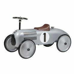 Deze prachtige Jean Retro Roller loopauto in zilveren kleurstelling is gebaseerd op de stijl van de formule 1 wagens van vroeger. Super leuk voor jongens en meisjes. Urenlang speelplezier voor zowel binnen- als buiten gegarandeerd. De loopauto is voorzien van metalen wielen en rubberen banden en een kunststof zitting. Leuk als verjaardagscadeau, maar ook heel leuk als woonaccessoire! De loopauto is volledig van metaal en eenvoudig in elkaar te zetten en te monteren. Jouw kindje kan zó opstappen en karren maar! Geschikt voor kinderen vanaf 24 maanden. Afmeting: 75 x 40 x 40 cm. Draaggewicht: max. 20 kg.