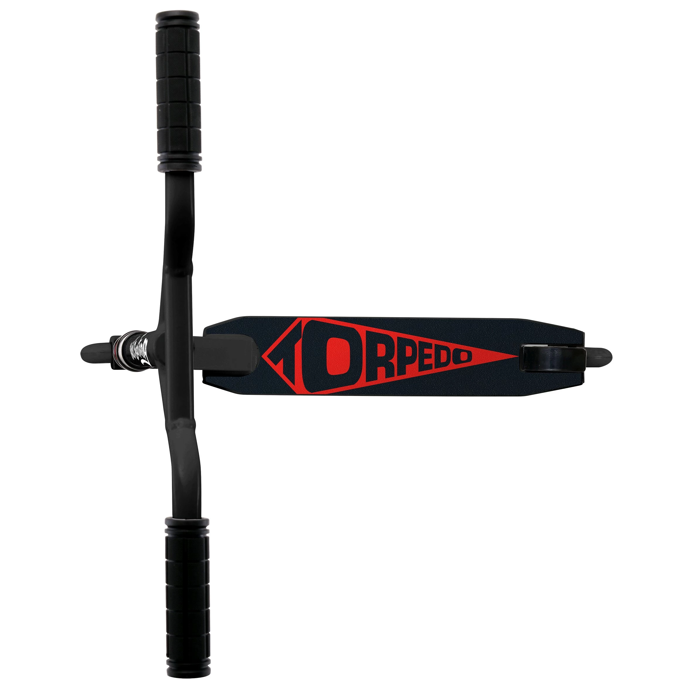 De Torpedo Stunt Scooter van Street Surfing is een robuuste freestyle aluminium scooter, gebouwd om geweldige trucs uit te halen op het skatepark. Het 6061 aluminium stuur biedt maximale sterkte bij het lichtste gewicht. De wielen zijn gemaakt van high grip polyurethaan met een aluminium kern voor het beste in stijl en prestaties. In Black Core red uitvoering in zwarte kleurstelling met rode Torpedo print. Met 19 inch (48 cm) x 3,9 inch (10 cm) 6061 aluminium deck en handle bar met afmetingen 52 x 60 cm. Met TPR grips, klem met 4 bouten en BMX Y-Style handle bar. Wielen: 100 mm aluminium core, ABEC 7. Voorzien van high performance rem. Maximaal draaggewicht: 100 kg. Geschikt voor kinderen vanaf 8 jaar.
