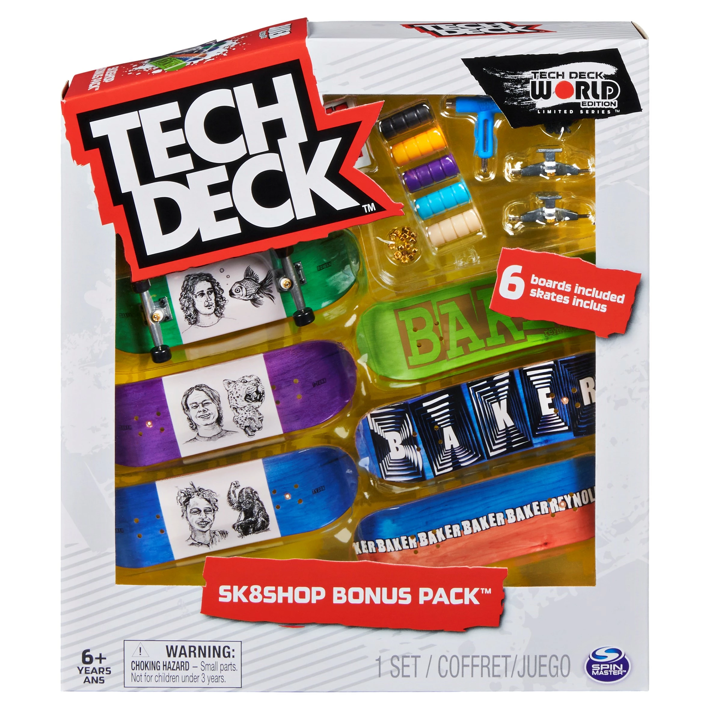 Ontdek Tech Deck: een 98 mm fingerboard met authentieke afbeeldingen van echte skateboards en met coole skate accessoires! De Tech Deck Skate Shop Bonus pack bevat alles wat je nodig hebt om met fingerboarding te starten. Het product bestaat uit zes volledig veranderbare fingerboards, 6 extra sets met wieltjes en gereedschap om jouw fingerboard op de juiste positie af te stellen. Geschikt voor kinderen vanaf 6 jaar.