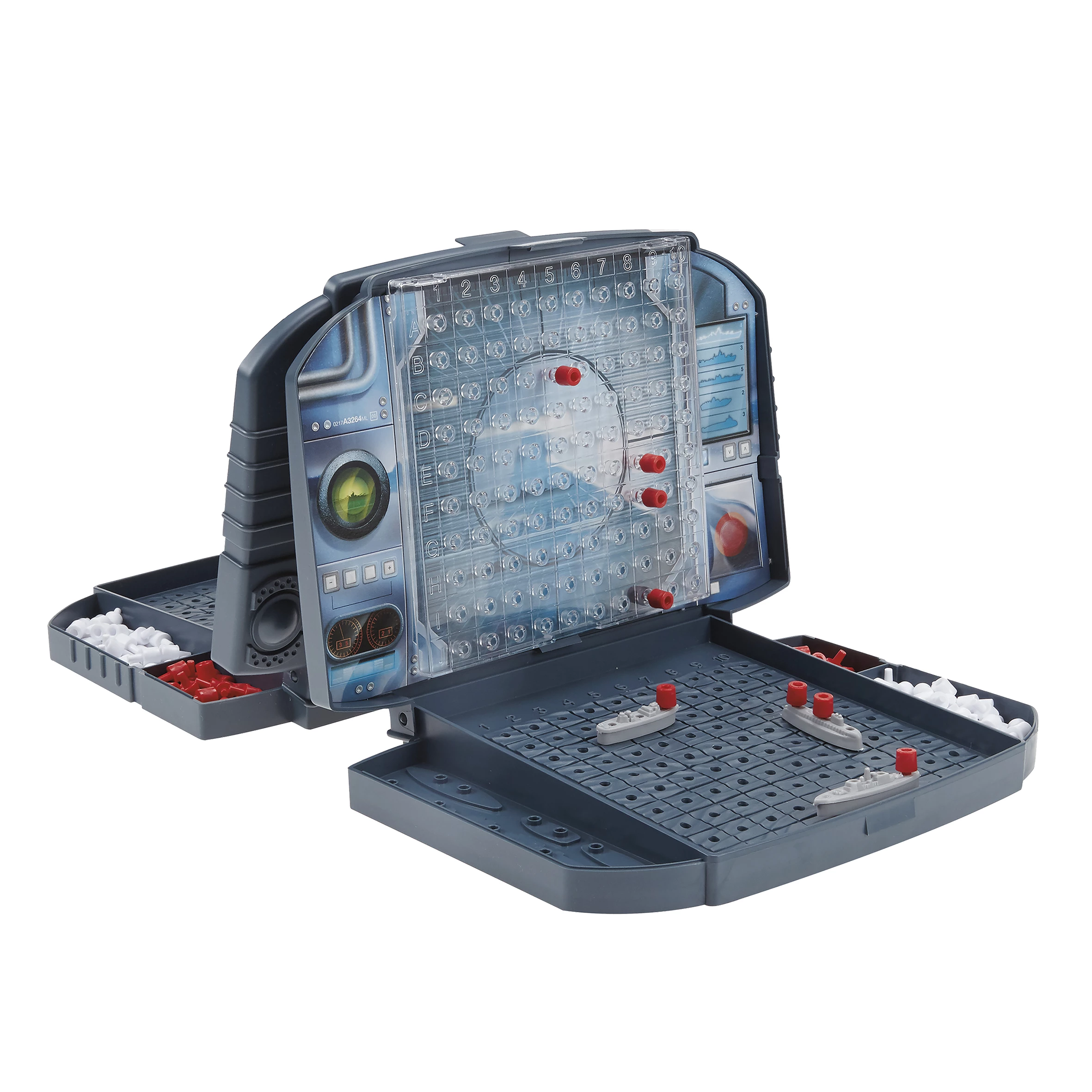 Dit Zeeslag-bordspel is het klassieke zeegevechtsspel dat competitie, strategie en spanning samenbrengt! In dit duel zoeken beide spelers naar de vijandelijke schepen om ze één voor één te laten zinken. Het Zeeslag-spel, met handige draagkoffers en realistisch uitziende zeeschepen, plaatst de spelers in het midden van de actie. De spelers staan aan het hoofd van een krachtige vloot bestaande uit een vliegdekschip, torpedojager, een onderzeeër, een patrouilleschip en een slagschip. Elke speler meldt de coördinaten van elk schot en controleert of het al dan niet een treffer is. Breng de schepen strategisch op het bord aan om de aanvallen van de tegenspeler te ontwijken en geef de treffers en missers op het zeerooster aan met rode en witte pinnen. Geen schip is veilig in dit spel vol geheimen en spanning. Geschikt voor kinderen vanaf 7 jaar.